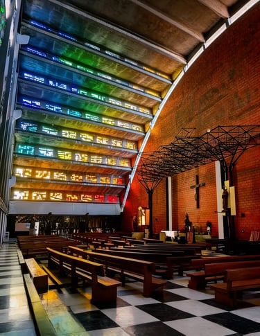 Stepping inside changes everything. Designed by Salvadoran sculptor and architect Rubén Martínez, the church broke from traditional cathedral architecture and remains one of the most distinctive religious spaces in the country. Martínez used a single-span arched structure without internal columns to create an open, inclusive space.